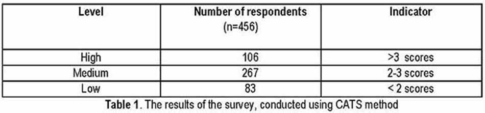 According to the results of testing on the scale of abuse and psychological trauma in childhood, all respondents were divided into three groups: high, medium, and low levels of psychological traumas in childhood due to family violence on the CATS scale (see Table 1).