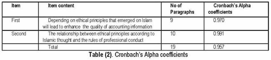 Through statistical analysis as well as the Z test it was accepted the first hypothesis, which states that adoption of ethical principles emanating from the Islamic religion that will enhance the quality of accounting information.