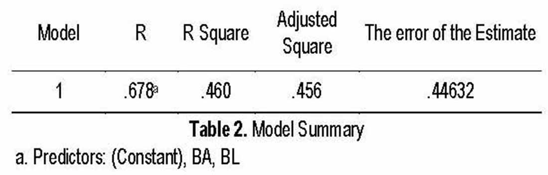 The above data also reveals that there is a statistically significant relationship between PI and BL is i.e., P (0.000) <0.05 as well las between PI and BA, i.e., P (0.002) <0.05.