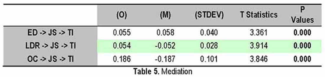 The moderation level was measured to analyze the direct and indirect influences of the variables or mediating factors. Moreover, relationship significance was also specified in this research. The method of bootstrap was based on 1000 observations. The level of significance was less than 0.05 to be acceptable. The p-value for all the formulated hypotheses was less than 0.05, which means these are accepted. In Table 4, it is reflected that the customer response creates a mediating impact on the relation of agile SC and its performance. The results of moderation show that the values for p and t are significant for the hypotheses. The value of t is more than 1.96 and the p-value is less than 0.05. This leads to the acceptance of the third hypothesis.