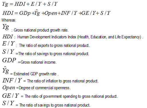 Based on previous empirical studies on the relationship between economic growth and human development and based on the previous discussion on the causal relationship between economic growth and human development, we used a form of immediate equations and this model is based on the economic theory of the determinants of the human development indicators guide for the purpose of measuring the relationship between economic growth and human development:
