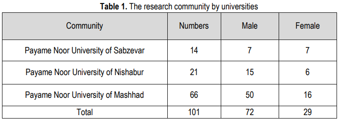 The present study is applied in terms of purpose. It is also descriptive in the present study will describe the present situation. Methods of data collection are methodological. The statistical population of this study includes all Payame Noor University professors of Sabzevar, Nishabour, and Mashhad in the academic year of 2017- 2018.