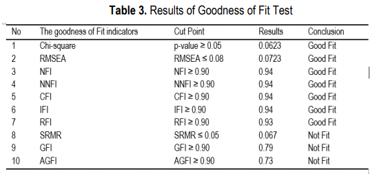 Below are the test results of the goodness of fit of this research. See Table 3.