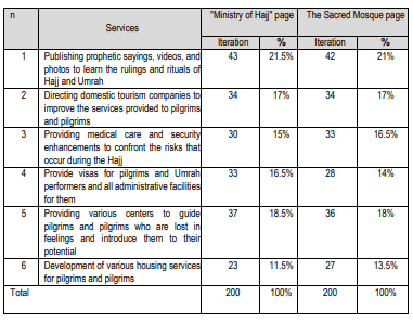 Especially the interaction of pilgrims and Umrah pilgrims with the services provided to them by the General Presidency of the Two Holy Mosques in my pages “The Hajj Visitation and the Sacred Mosque”. "Facebook" is a social media network that plays a pivotal role in the transmission and circulation of news among followers (Jilani et al.: 2019, p. 14)