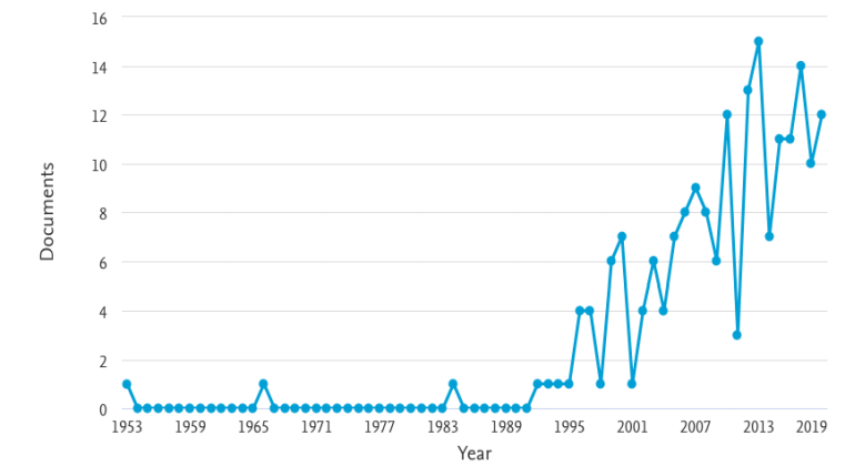Durante el periodo de tiempo comprendido entre 1953 y 1999 se publicaron 22 artículos, dejando un promedio de 0,47 documentos por año. Entre el año 2000 y el 2009, la producción de artículos se aumentó, llegando hasta 60 publicaciones, eso llevó a un promedio de 6 textos por año. Finalmente, en los últimos 10 años (2010-2019) se publicaron 108 artículos, pasando el promedio de producción a 10,8 documentos por año, lo que implica que las discusiones académicas sobre las relaciones entre comercio internacional y derechos humanos se han venido aumentando en los últimos años como consecuencia de las manifestaciones sociales que han explotado en diversos países en el contexto mundial.