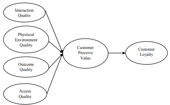 3. The relationship between the customer perceive value with customer loyaltyThe customers perceive value is an important thing that may affect customer loyalty, this is shown in a study conducted by Suhartanto, Clemes, and Dean (2013) that the customer perceives value has a positive relationship with the customer loyalty on the field of tourism and hospitality industry. The results of similar studies are indicated by (Hapsari, Clemes, Dean, 2017) that the customer perceives value is important in influencing customer loyalty in the industry. This is clarified by the research done Lai, Griffin, and Babin (2009) that the customer perceive value in positive relationships has directly against customer loyalty in users of telecommunications services in China. It is expected in this research is if the customer perceives better value then it will affect both to customer loyalty, so in this research hypothesis drawn research: