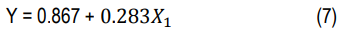 The constant (a1) of 0,867 showed that without the insider ownership variable (𝑋1), or mathematically 𝑋1 = 0, the financial performance variable (Y) will be 0,867. The coefficient (b1 ) of the insider ownershipvariable (𝑋1) equal to 0,283 showed that the insider ownership variable (𝑋1) tended to devise progressiveinfluence on the monetarist routine adjustable (Y). Higher insider ownership resulted in better financialperformance. The measurement of persistence (b2) of 0,207 indicated that the influence of the insiderownership variable on financial performance was equal to 0,207 or 20,7 and the remaining 79,3% wasinfluenced by other variables.