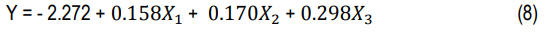 The constant (a2) of -2,2772 indicated that without the insider ownership variable (𝑋1), firm size (𝑋2),and insider ownership and size interaction (𝑋1. 𝑋2), or mathematically 𝑋1. 𝑋2 and X1. X2 = 0, firm size (Y)will only be 0,867. The regression coefficient (β1) of the insider ownership variable (X1) of 0,158 showedthat the economic performance adaptable (X1) tended to have an affirmative influence on commercialperformance (Y). Higher insider ownership would mark in better financial performance, with the assumptionthat firm size and its interaction with insider ownership were constant. The regression coefficient (β2) of size variable of 0,170 showed that the stable dimension alterable (X2) tended to have a positive influence onfinancial performance (Y). Larger companies had better financial performance and vice versa, assumingthat insider ownership and its interactions with firm size were constant. The regression coefficient (β3) of insider ownership and firm size interaction (X1. X2) of 0.298 showed that the interaction (X1. X2) tended tohave a progressive influence on the financial show variable (Y). Higher interaction of insider ownership andfirm size resulted in better financial performance. The coefficient of determination (R2) of 0,314 showed thatthe influence of insider ownership, firm size, and the interaction between both variables on financialperformance was 0,314 or 31.4, and the continuing 68,6% was induced by supplementary variables not included in this analysis.