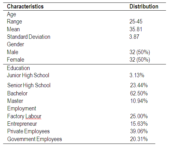 Respondents should reside in West Java, Indonesia. Table 1 displays respondents' demographic characteristics.