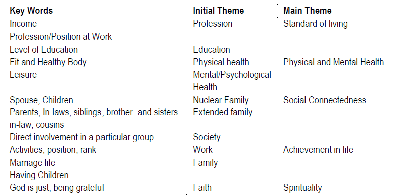 Social connectedness was one of the main themes emerging from the data. In this context, social connectedness was the feeling of joy that respondents experienced from their relationships with their nuclear family, extended family, and society in general. Respondents felt happy when they received support from the nuclear family, extended family, and society. The importance of family for respondents was evident in their statements: