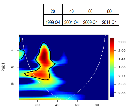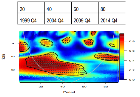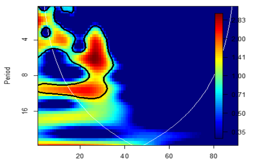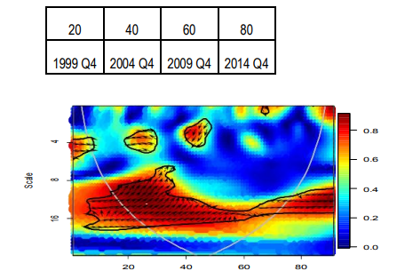We applied the wavelet coherence approach due to the fact that it allows any correlation in compoundtime-frequency based analysis between two-time series p (t) and q (t) to be displayed.