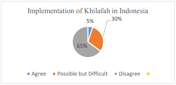 The rest 5% states that the Khilafah system can be implemented in Indonesia as in the history of Islam, the Khilafah system was once successfully established and discussed in several classical books. However, the lecturers cannot explain in details on the roadmap of the Khilafah system’s implementation.