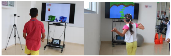After sessions were over, the child's condition was re-assessed to see the level of evolution in postural control through video games in children with cerebral palsy sequelae in upper extremities. Figure 3 shows the platform use, consisting of a computer, a television, a Kinect and the virtual reality system. Three children diagnosed with cerebral palsy participated in the research. From 10 to 15 years old, meeting the gross motor I and II inclusion criteria. Two were male and one female.