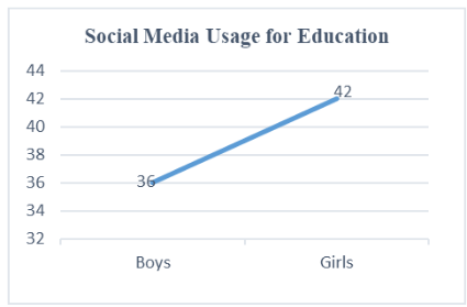 Figures 3 and 4 show an explicit gender difference concerning social media usage. N=36 or 23.6% of boys and n=42 or 27.6% of girls revealed their social media usage for educational purposes. Another study also investigated social media usage and found that teenage girls mainly prefer social media for educational purposes. This is because of increased learning opportunities causing improved academic performance.
