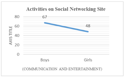 Likewise, estimating the activities of boys and girls regarding social media usage, it was unveiled that n= 67 or 88.1% of boys tend to use social media for entertainment and communication. In contrast, only n= 48 or 36.8% of girls use social media for entertainment, communication, and time-killing purposes. Gender differences are explicitly visible in patterns of social media usage among teenagers.