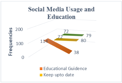 According to Habes (Habes: 2019, pp. 32-39), Kasahara et al. (Kasahara et al.: 2019, p. 32) young generation uses social media for different reasons that help them to gain better academic grades and self- confidence. One more study authenticated the use of social media for education aspirations. Findings of her study unveiled that most students use social networking sites to attain supplementary material for their curriculum (Tartari: 2015, pp. 393-393). Sharing knowledge and gaining information is useful for them. Therefore, to further improve academic performance, social media should be used by instructors and institutions as well.