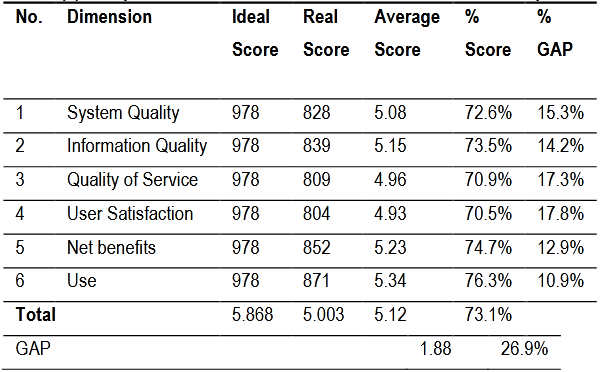 In this study, the definition of the success of an information system, based on the literature (Aswati et al.; 2015, pp. 79-86; Dorothy et al.: 2014, pp. 209-222; Rahayu et al.: 2018, pp. 34-46; Sulindawaty: 2015, pp. 76-81) is that there is a significant influence from the application of the system in organizations in the form of interconnected components in collecting, processing, storing and distributing information that supports operational activities namely managerial (decision making) or supervisory. The dimensions for assessing an information system according to the updated D&M IS Success Model is system quality, information quality, service quality, user satisfaction, system use, and net benefit (Delone, & Mclean: 2003, pp. 9-30).