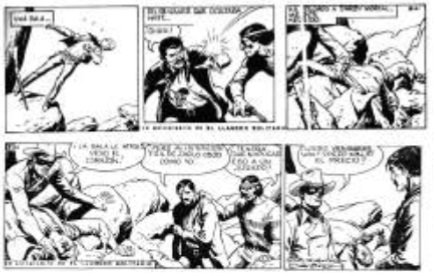 Una situación parecida se encuentra en strips anteriores (Imagen 38) de la misma historia. Cuando después de varias escenas cargadas de tensiones y apuros, el Llanero Solitario logra llegar a tiempo para salvar a Will de ser asesinado, cerrando así un momento de tensión que se iba dando desde páginas anteriores.