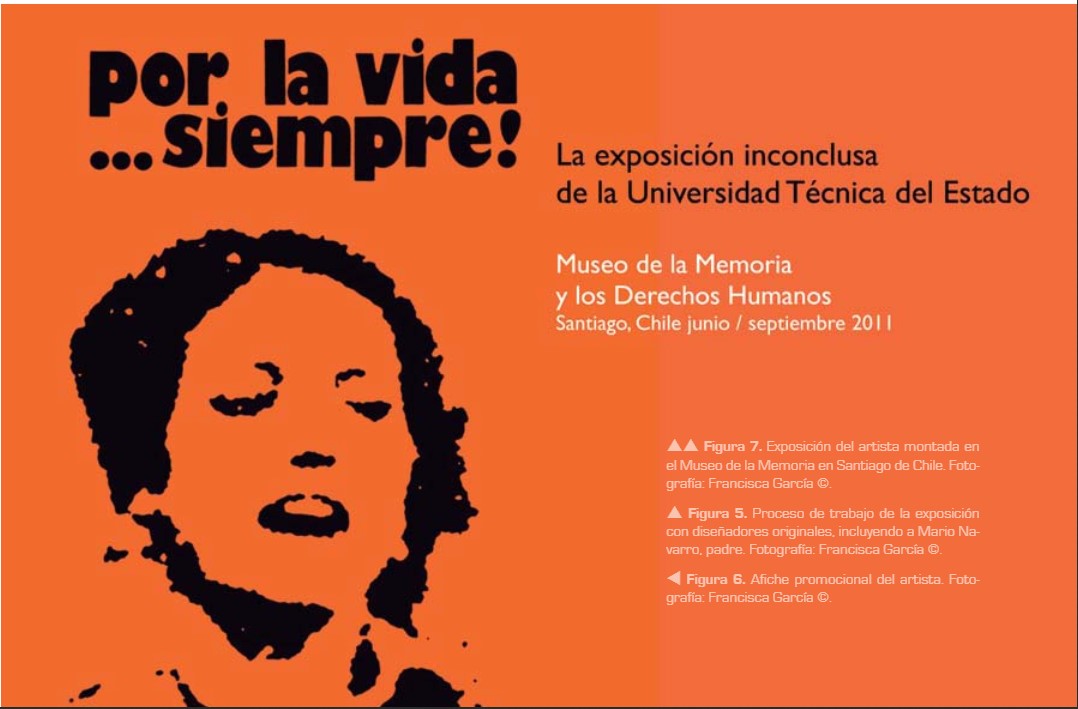 El segundo ejemplo, tomado como “posición de distancia” y vinculación con su historia de vida, es la obra Por la vida … Siempre! La Exposición Inconclusa de la Universidad Técnica del Estado (2012), la cual es un homenaje a la exposición que se realizaría el 11 de septiembre de 1973, y que fue truncada por el golpe de Estado en la misma fecha programada para su apertura. La exposición original estaba pensada como propaganda que llamaba a los chilenos a impedir la guerra civil. Esta se había planificado realizar en el frontis de la Casa Central de la Universidad Técnica del Estado (UTE). La exposición de homenaje de Navarro consistió en 18 reproducciones de 38,5 x 55 cm, basados en un único original encontrado. El equipo de realizadores fue el mismo equipo de diseñadores que había trabajado en los afiches originales antes del golpe militar, entre ellos se encontraba Mario Navarro, padre. La exposición fue emplazada en la sala del Museo de la Memoria en Santiago de Chile.