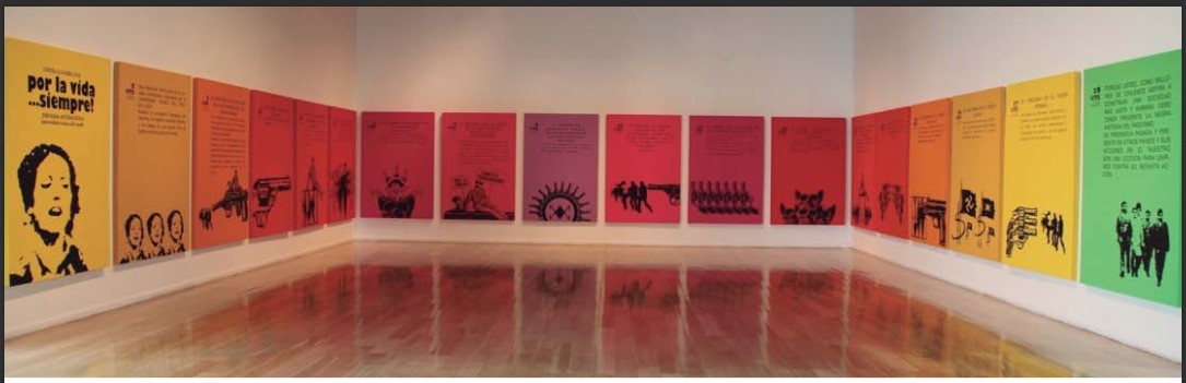 Abstract: The artwork of Mario Navarro, who is a recognized postdictatorship Chilean visual artist and whose father was a political prisoner at the civic-military dictatorship, is presented in this study. Through a comprehensive exploratory unique case, this piece of work shows the influence of intergenerational transition of memories associated with political violence at the Chilean civic-military dictatorship. A life account and art creations made by the artist were used as data pro-duction technique, moreover a narrative analysis of these two items and formal observation of the visual pieces of work were also taken into consideration. The main results of the research tFragmento de la obra: The New Ideal Line Opala: 2002.Fotografía: Constanza Valderrama©, 2002.show that part of the professional life choice and some of the artist’s visual works are conside-rably influenced by an indirect intergenerational political detention experience the artist’s father had to face.