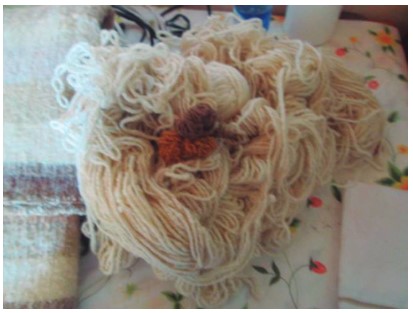 Secado: la lana limpia se estira y se pone a secar sobre una superficie plana, al aire libre o cerca del calor de la cocina o fogón de leña.