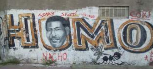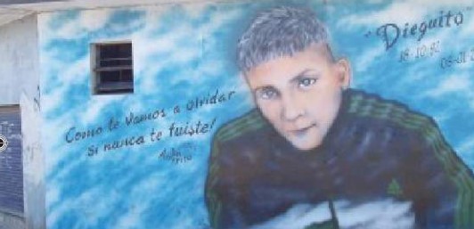 Es usual encontrar en diferentes barrios de zonas metropolitanas de Argentina3, generalmente marginales, murales con retratos de jóvenes fallecidos. Los mismos, realizados por los propios compañeros o por algún grafitero o pintor del barrio al que estos le pagan, van acompañados por el nombre o apodo del difunto y, muchas veces, por inscripciones o poesías dedicadas, cuidadosamente redactadas en la pared. Dicho dispositivo de visibilidad presenta registros de factura plástica variable que, evidentemente, se encuentra asociado al nivel de tecnificación de la/s persona/s que llevan adelante el trabajo. En ese sentido, bajo la idea de un pretendido naturalismo, uno puede advertir modalidades convencionales de representación típicas del uso efectista del aerógrafo, el aerosol industrial o, en otros casos, de la pintura convencional elaborada con látex de exteriores, esmalte sintético u otro material disponible.