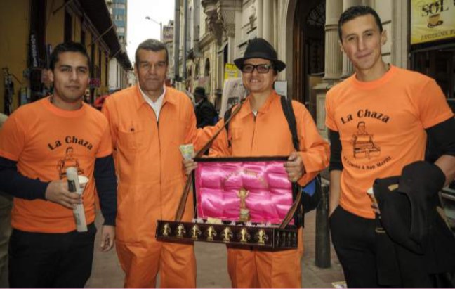 El viernes 11 de julio de 2014, sin andamiajes técnicos ni parafernalia conceptual, los artistas de acción que nos están haciendo cambiar nuestra manera de sentir el espacio y las estrategias para pensar la palabra viva, que nos invitan a deconstruir el discurso neoliberal implementado por la incuria del régimen curatorial, salieron a transitar la historia, de arriba hacia abajo, de abajo hacia arriba, la calle 16 entre carreras Séptima y Octava. Como muchos chazeros y chazeras del lugar hacen a diario, buscaban un espacio para modelar, para destejer y tejer un lugar personal adecuado a ese real precario, expuesto y simbolizado en cada una de las chazas que pueblan con sus resignaciones y claudicaciones la calle 16. Llegando a la carrera Octava es inevitable encontrarse con el viejo y gallardo portal colonial del Café San Moritz, allí, estratégicamente mimetizado detrás de un grupo de chazas precarias que luchan por no ser devoradas por el régimen de los mercados desregulados. Como miles de estos hombres y mujeres chaza dispersos por Bogotá, los artistas convocados buscan un espacio durante el viernes ya mencionado, pues, sienten la necesidad espiritual de realizar los ejercicios de existencia que reclaman en silencio los chazeros del sector. La existencia se nos da en grados. Hay hombres y mujeres inexistentes, los hay con poca existencia, así sean muy pocos, también los hay con existencia plena. El arte contribuye a incentivar la existencia (Badiou, 2012, p. 74). A diferencia del chazero de bienes precarios, con cada ejercicio el artista de acción refuerza el grado de su existencia, con cada uno de sus gestos la potencia en otros, pues, de otra manera sucumbiría tanto él como quienes lo acompañan o siguen en sus ejercicios, como sucumben a diario cientos de chazeros y chazeras bogotanas. Al contrario, los chazeros sometidos por el apremio de la vida, en cada una de sus prácticas ven con espanto cómo el régimen neoliberal les reduce su existencia.