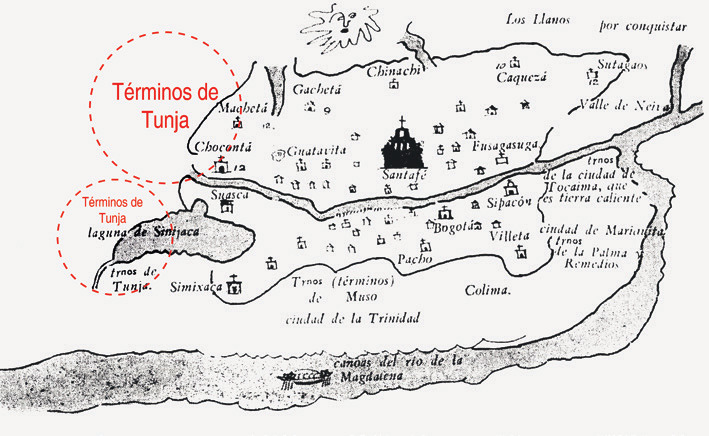 Como se observa en la imagen 1, muchas de las poblaciones aledañas a la actual Bogotá subsisten hoy en día, Tunja es señalado como territorio vecino de Santa Fe indicado en el dibujo original con una mano con el índice extendido hacia oriente.