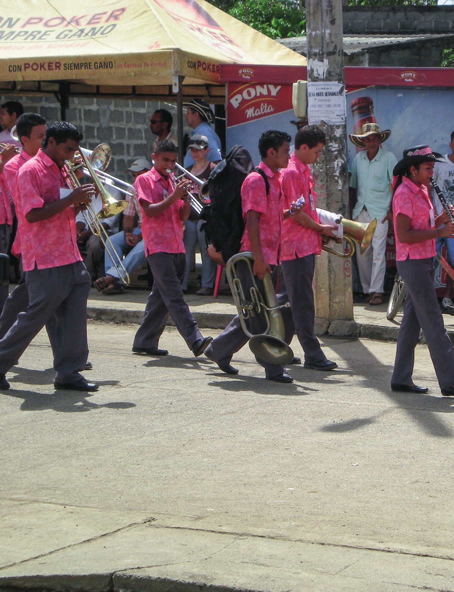 Por otra parte, resulta más fácil entender por qué las piezas de géneros comerciales que son adaptadas a las bandas tampoco se consideran tradicionales, a pesar de que están presentes en el quehacer de estos grupos desde varias décadas atrás. Esto sucede, por ejemplo, con el vallenato, cuyo origen desligado de lo local hace pensar en que representa a otros y no a la comunidad que prefiere la música “propia” de bandas pelayeras. Pero, en contraste, a pesar de que se reconoce que el género de Puya tocado en las bandas es una adaptación de algunas prácticas de los grupos de gaitas y tambores, este género no se aísla del imaginario sobre el repertorio tradicional, al parecer, no cuestiona fuertemente su ideal de autenticidad. Así pues, además de la preocupación por mantener una conexión local, puedo pensar que la circulación a través de los medios masivos de comunicación de los originales de algunas piezas que son adaptadas a las bandas, rompe con la lógica de autenticidad que hace ver a la música de bandas como un vehículo de identificación regional cuyo origen debería ser campesino y mantenerse en estado subalterno. Esto concuerda, además, con la mirada fatalista que se impone ante la intención de hacer llegar a la música de bandas —su música más característica— a los medios masivos, proceso que, para quienes lo intentan, requiere en ocasiones de una serie de traducciones que no son bien vistas por los defensores de la tradición.