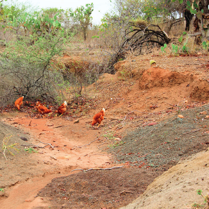 Los encuentros con los animales permiten reflexionar sobre los presupuestos de órdenes establecidos tradicionalmente en relación con ellos, preguntándome cuando pasamos por un criadero de gallinas: nos miramos asustados, sobrecogidos, en silencio, viviendo el ruido agudo, los chillidos y la situación de estar en la situación de la gallina. ¡Qué vida tan desesperante le hemos creado a la gallina…¡ y contribuimos permanentemente a que continúe; la energía sonora del dolor nos golpea, la situación de sufrimiento de los animales se hace evidente. Hablamos sobre nuestra relación con los animales que hemos domesticado como humanos. Algunos de ellos los acompañan en sus caseríos y gracias a ellos viven los hombres. En el desierto de la Tatacoa, la familia campesina en donde nos hospedamos mostró un cariño maravilloso para con nosotros y para con sus animales. Mijo, mijo, venga tome su tetero. Venga mijo córrase de allí. Así dialogaban con los bebes cabritos que se encontraban acostados y juntitos debajo de la mesa del comedor durante el tiempo que tomamos el desayuno. El tetero del uno y luego el del otro lo daba el señor de la casa, grande, corpulento, pero atento de su familia. Volteando la mirada a raíz de unos chillidos agudos, y no más lejos de dos metros, otros hombres de la casa estaban matando los cabritos de dos o tres años para su almuerzo, compartir la carne y con el resto sacar ganancias.