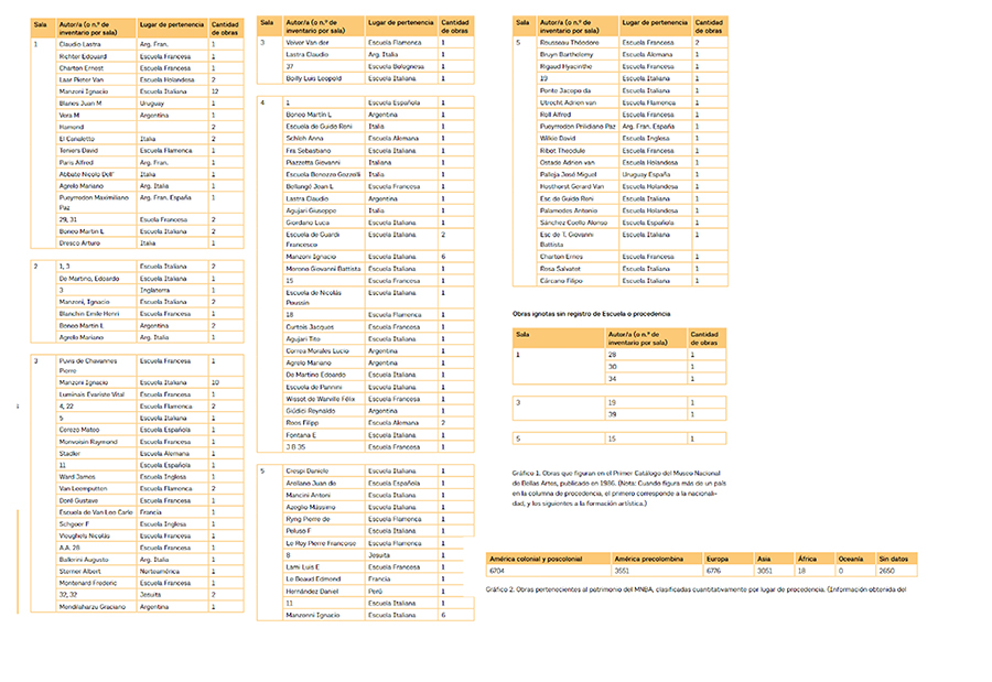 Obras que figuran en el Primer Catálogo del Museo Nacional de Bellas Artes, publicado en 1986. (Nota: Cuando figura más de un país en la columna de procedencia, el primero corresponde a la nacionalidad, y los siguientes a la formación artística.)