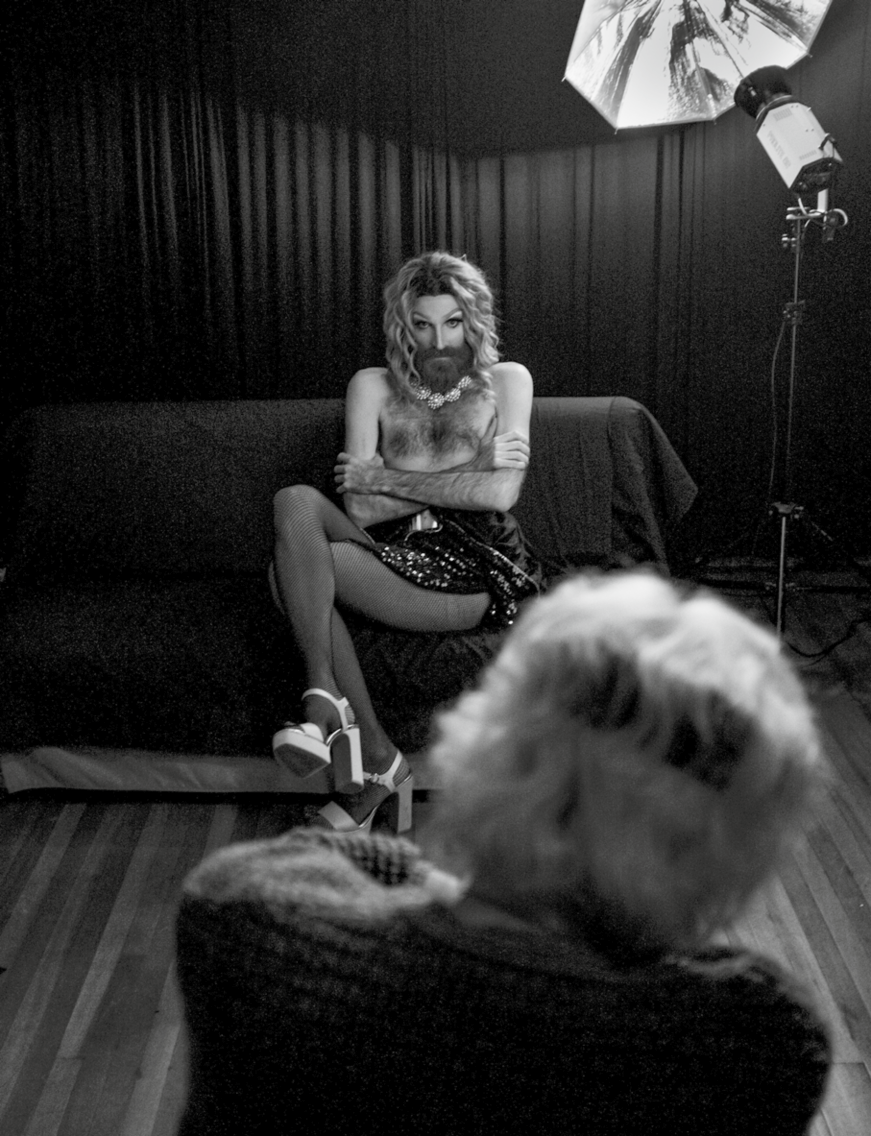 En efecto, se cruzan dos protocolos de socialización artística y cultural: la lógica formalista del mundo del arte y la lógica de cabaret propia del mundo drag. A instancias del proyecto de investigación Escrituras Artísticas, la Universidad Distrital Francisco José de Caldas invita a Hernando Toro a realizar estudios fotográficos de artistas destacados del mundo drag colombiano. En Bogotá, se reúnen artivistas de Cali, Medellín y del Distrito Capital. Además de la producción fotográfica, los artivistas realizan una performancia, la noche de la inauguración de la exposición.
