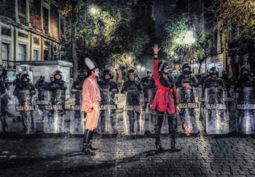 La posesión de Peña Nieto a beber tequila y ron" Luis Almendra y Pinina Flandes, intervención calle- jera. Foto: Buscando América (Oregon).