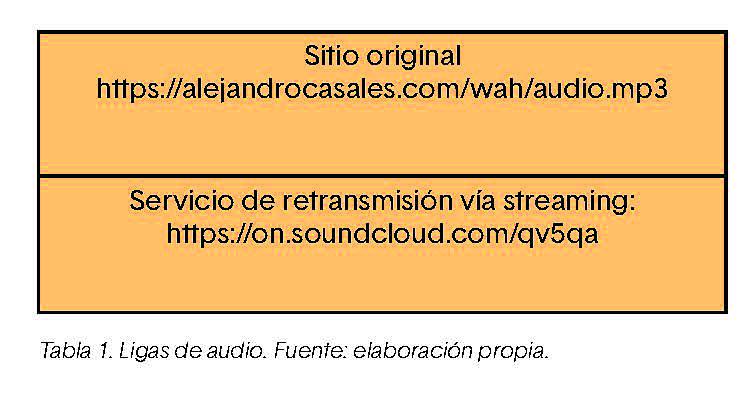 Asimismo, las encuestas se diseñaron para identificar patrones de conciencia, emociones y percepciones de los participantes, a través de la audición de un paisaje sonoro con una duración de 48 minutos. Las técnicas para captar el paisaje sonoro fueron microfonía binaural y cardioide (Bautista, 2020). El paisaje se difundió en una instalación con seis altavoces en un área abierta de 310m2, lo que permitió la reproducción de una inmersividad a 51.4dB. Una extracción de su contenido se puede escuchar en las siguientes ligas, véase tabla 1.