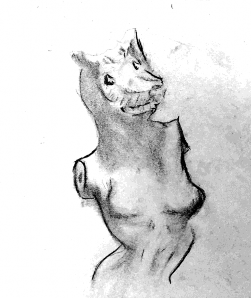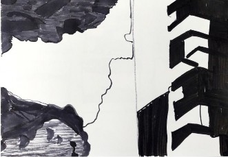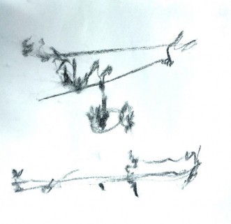 Cuando el borde determina a la forma, su condición es de peso, de materia que no solamente refiere a una masa humana, sino a la dimensión de la condición de volumen, por lo tanto, ocupa espacio y siempre es estructura. El dibujo busca configurar visualmente los cuerpos desde la mímesis de lo que ocurre en el mundo, de modo que abstrae en la memoria lo que ve del mundo físico para situarlo de manera comparada en la superficie sobre la que se dibuja.