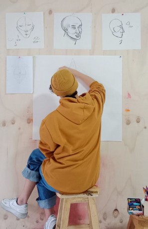 Así, la dimensionalidad fue importante para reconocer elementos que se encontraban dentro y fuera de El Dibujadero, como los maniquíes que se usan para dibujar, pero también los espacios de la cuadra que se encuentran afuera y que, para el caso de Guadalupe, significó reflexionar sobre la naturaleza del espacio y cómo va más allá de los elementos físicos que lo ocupan.