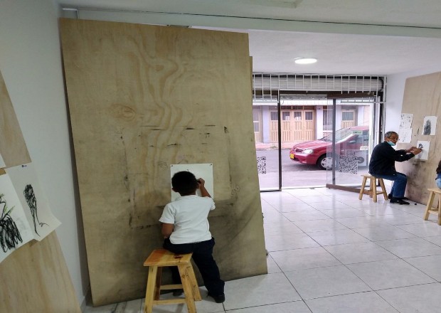 El Dibujadero es un espacio artístico no convencional, abierto y gratuito para todos los públicos de la ciudad de Bogotá, ubicado en el barrio Siete de Agosto, en donde, por medio del acto de dibujar como posibilidad de exploración plástica, se contribuye con el ejercicio formativo desde la técnica en un contexto donde los espacios de creación plástica no son la prioridad y, por otro lado, desde el dibujo como suceso de reflexión conceptual se generan relaciones en el contexto a partir de las labores de las personas que habitan el barrio. Así pues, se forjan encuentros con el fin de desdibujar los límites sociales, políticos, económicos y educativos, de modo que sea posible reconocer la imagen como un suceso social, donde el ejercicio artístico es asumido en función del conocimiento individual que incide sobre lo colectivo, en la implicación de los sujetos que lo habitan como agentes culturales