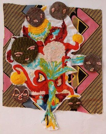 Imagen 10. Flores para Librada (Claudia del Río, 2014). Collage y bordado. Colección particular