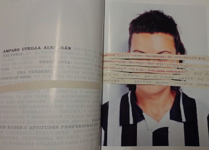 Las noticias sobre hechos violentos tomadas de medios rosarinos, su transposición de la impresión tipográfica a la caligrafía manual, y su intervención con estas en banales publicaciones españolas (Imagen 8) fue parte de la producción desarrollada por Claudia durante su residencia en Arteleku, centro de arte contemporáneo en Donostia, San Sebastián (País Vasco), en 2004. Esa locación es cercana a Bilbao, ciudad que, según recuerda, “por entonces tenía un índice cero de violencia social. En esos meses leía el diario en mi computadora y bajaba las noticias. Las reescribí todas a mano y las pegué para interrumpir esas estúpidas revistas gratuitas” (del Río en Martínez Quijano, 2013). En las portadas de estas revistas, cruces con pintura monocromática, que remiten al Kazimir Malevich del pináculo del suprematismo, obliteran las imágenes de los que se puede adivinar como bellos modelos masculinos.