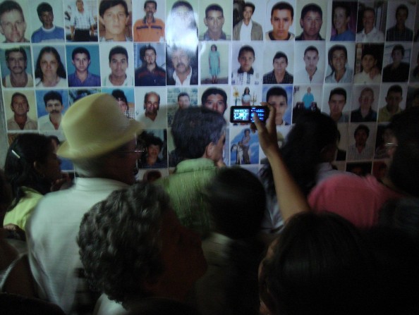 Del otro lado del espacio se encontraba el muro de fotografías recolectadas por las personas de ASOVIDA de los familiares que habían muerto o estaban desaparecidos en el marco del conflicto armado y que eran mostradas por primera vez de manera colectiva. Lo más importante de esta exposición fue la reacción que tuvieron los asistentes, quienes se concentraron en el muro de las fotografías para hablar sobre quienes eran sus familiares, amigos y vecinos; contar historias, reír, llorar y recordar el vínculo que tenían con ellos y lo que les pasó. Así, sin darse cuenta, juntos hicimos ejercicios de memoria colectiva.