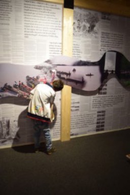 Figura 7. Fragmento de la exposición Voces para Transformar a Colombia. Caso Río Atrato Sujeto de Derechos. Filbo, Bogotá, 2018. Cortesía de Lorena Luengas.