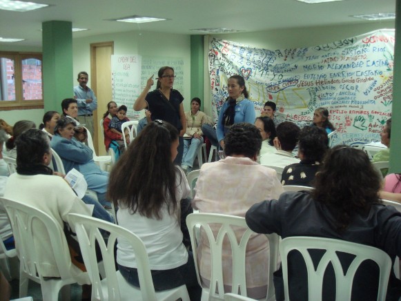 El Salón del Nunca Más fue un espacio producto de un largo proceso de trabajo comunitario que como persona, artista y museóloga acompañé desde el año 2007. La forma de describir el proceso nace del trabajo que, con algunas mujeres pertenecientes a la organización social y gestoras de sus historias de vida, reconocí como parte fundamental del proceso de consolidación.