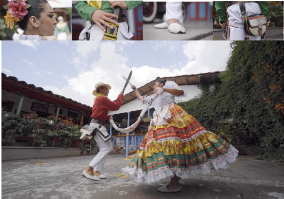Las danzas folclóricas de la zona cafetera colombiana constituyen un tesoro cultural valioso; son la expresión de la vasta diversidad étnica y regional del país. Igualmente, han sido transmitidas de generación en generación, gracias a lo cual se han preservado tradiciones ancestrales y la identidad de diferentes comunidades. Sus orígenes se remontan a tiempos precolombinos, donde los indígenas ya celebraban rituales y ceremonias a través del movimiento y la danza. Con la llegada de los colonizadores europeos, se fusionaron elementos indígenas con influencias africanas traídas por los esclavos; así, se dio una amalgama de culturas que se expresó en danzas únicas y autóctonas (Pira, 2016). Estas son un testimonio vivo de la historia y la diversidad cultural, que transmiten el legado a las nuevas generaciones. Sin embargo, las narraciones puestas en escena también se han nutrido de historias, costumbres y oficios contemporáneos, lo que significa la evolución cultural del territorio y su relación con el paisaje, en el sentido amplio de concepto.