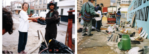 Los recicladores utilizan la calle como espacio de intercambio. Trapichean y recontextualizan objetos, imágenes y todo tipo de material callejero para cambiarlo o revenderlo. Transforman el “material secundario” en su materia prima. El trueque es común. El cambalache es su espacio. (Guzmán, 1999, párr. 31)2