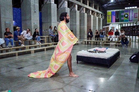 Abstract: A bed. A thousand and one lives is a performance that aims to reflect on the social and emotional circumstances faced by both the transgender sex worker community in the Barbacoas sector in Medellín and their regular clients, who navigate these circumstances mediated and divided by different identities. Thus, the performance seeks, on the one hand, to invite reflection on the archaic prejudices that are still exercised in Antiochian culture around sexual dissidence and, on the other, to question the dynamics that reify the sexual dissident as a mere object of consumption. Interwoven with an interdisciplinary methodological approach ranging from ethnography to relational art, the intervention allows for a symbolical representation of a thousand lives in a single action. This is complemented by sensitive supports situated within the sector, embodying representative constituents of other bodies—those that hold significance.