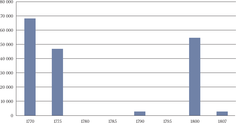 En toda la década de 1770 distribuyó créditos de modo constante, por significativas cifras que habilitó tanto a productores rurales como comerciantes transregionales. Es sugerente que durante el decenio de 1780 no figura en los protocolos notariales locales ni en otras fuentes que registren habilitaciones crediticias realizadas en la ciudad de Salta; posteriormente, la etapa de 1790 está determinada por el contexto bélico que enfrentó a la corona española e inglesa y trastocó negativamente los intercambios transoceánicos (Mazzeo, 1999, pp. 1-17).