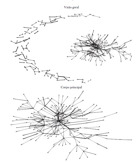 O gráfico 1 apresenta as redes contratuais estabelecidas entre os contratadores e fiadores nas arrematações do Conselho Ultramarino entre 1671 e 1789. São consideradas apenas as sociedades mercantis, sem se recorrer a outros indicadores como os laços familiares, apadrinhamento ou pertencimento a instituições. Também não são considerados outros vínculos econômicos além das arrematações como relações de crédito, procurações, fretamento de navios etc. Assim, trata-se de um panorama inicial e restrito. Mesmo com tais limites, pode-se observar que havia um corpo principal de vínculos seguido por redes contratuais mais limitadas e pouco extensas entre os agentes mercantis. No grupo principal de arrematantes e fiadores, havia uma grande centralização das relações mercantis, permitindo a concentração dos contratos em um número bastante limitado de agentes. Como não foi possível averiguar a origem da maioria destes contratadores, não é possível tirar conclusões acerca da composição mais ou menos favorável aos comerciantes do reino em relação aos existentes na América portuguesa.