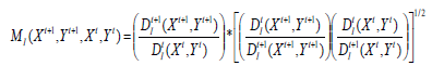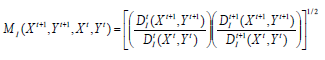 Para evitar la arbitrariedad de tomar como referencia uno u otro período, se opta por considerar como índice de Malmquist de una DMU, entre el período t y t+1, a la media geométrica de los dos resultados posibles (Färe, et al., 1994)