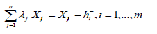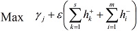 : Coeficientes de la combinación lineal de entradas – inputs - y salidas - outputs - a los que se está refiriendo el punto de proyección de DMU j sobre la frontera eficiente. Puede interpretarse como la proximidad del punto de proyección de DMU j respecto a la frontera eficiente.