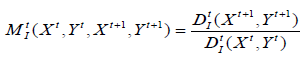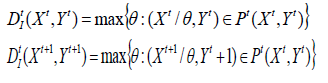 Definiendo funciones de distancia con respecto a dos periodos de tiempo distintos (t y t+1), y suponiendo un nivel de tecnología dado, se pueden obtener las siguientes expresiones, que definen las distancias -radiales- de entradas, dado un nivel de salida: